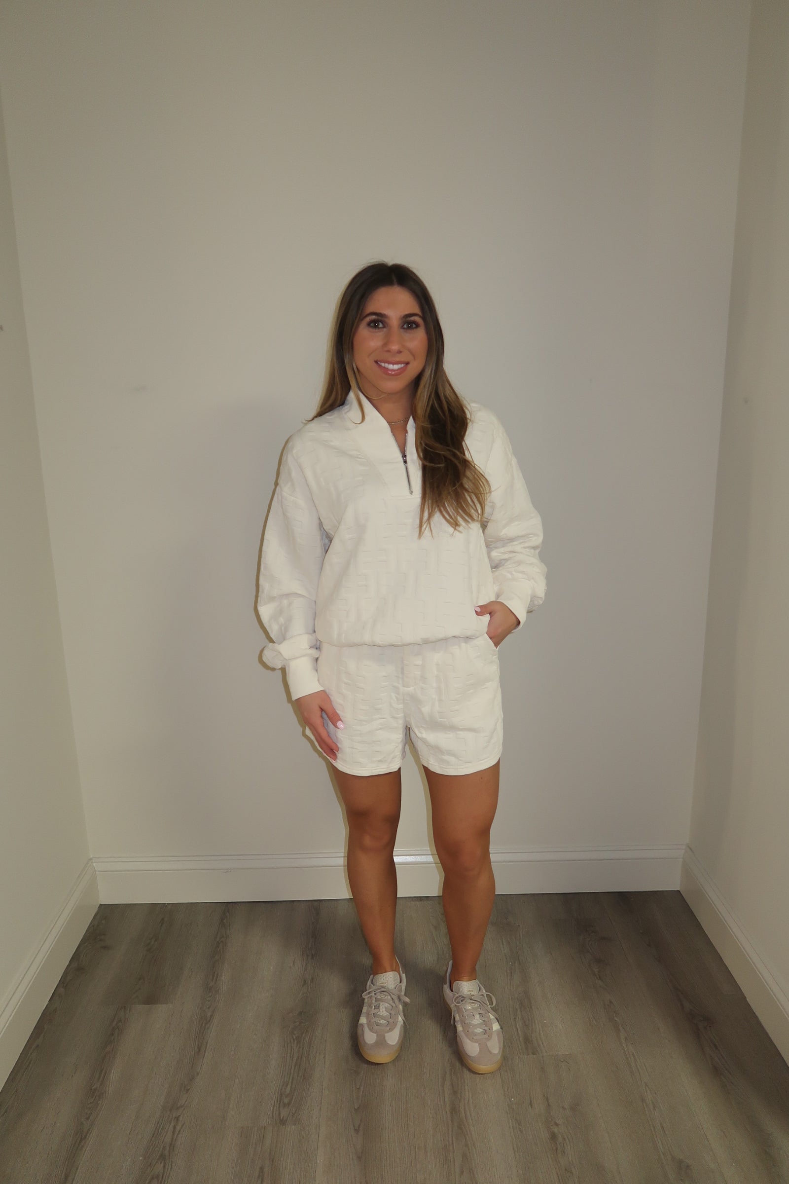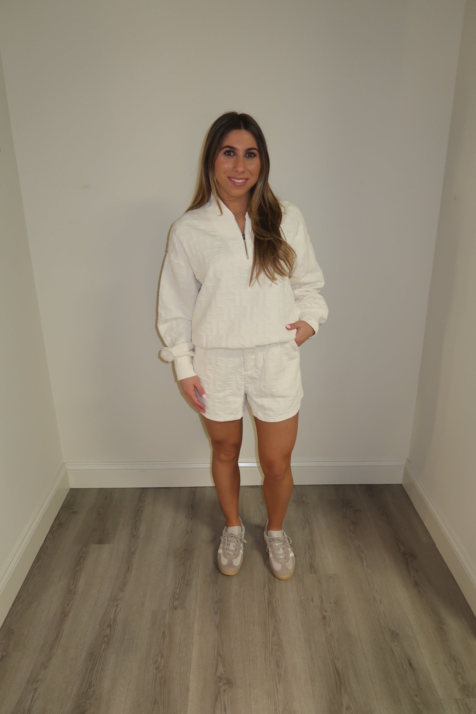 Cream Textured Shorts