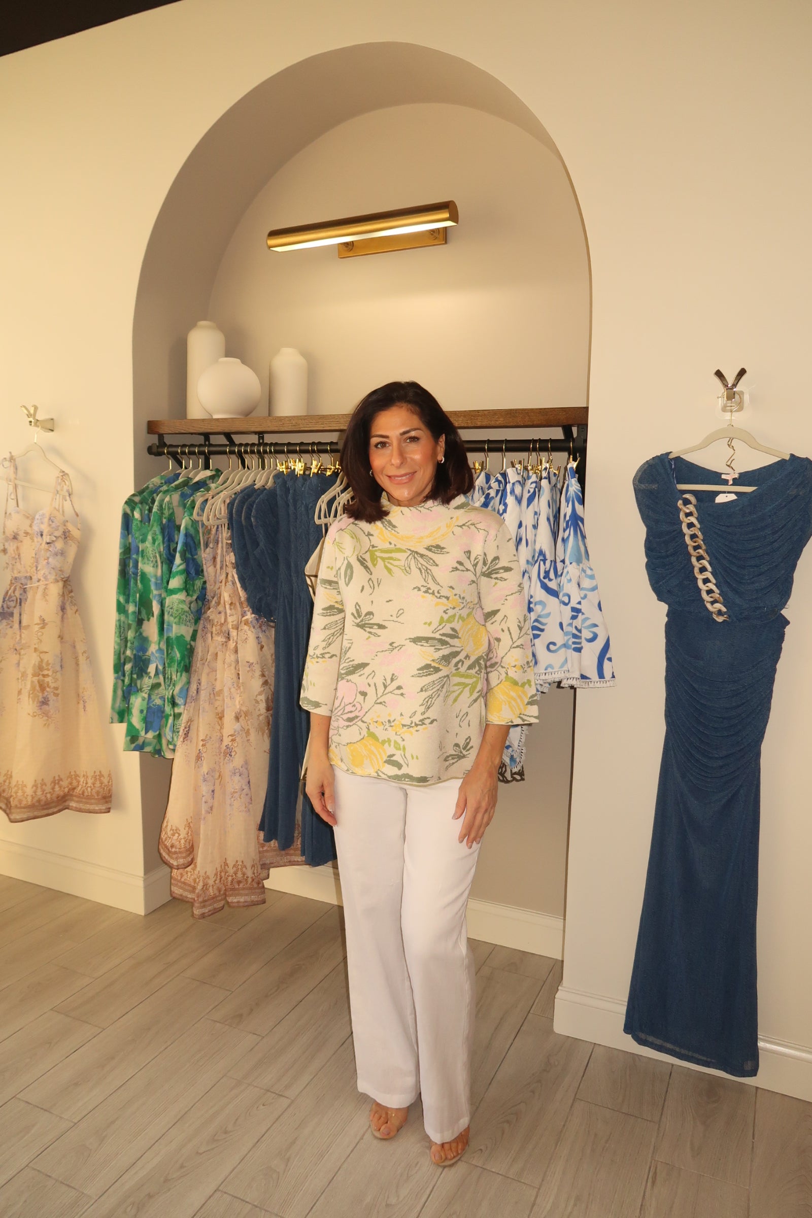 Fresh, feminine, and effortlessly polished — the Lemon Blossom Knit Top is the perfect transitional piece for spring and beyond. Designed in a soft ivory knit, this lightweight sweater features a delicate floral print in soft yellow, sage green, and blush tones for a romantic, elevated feel.