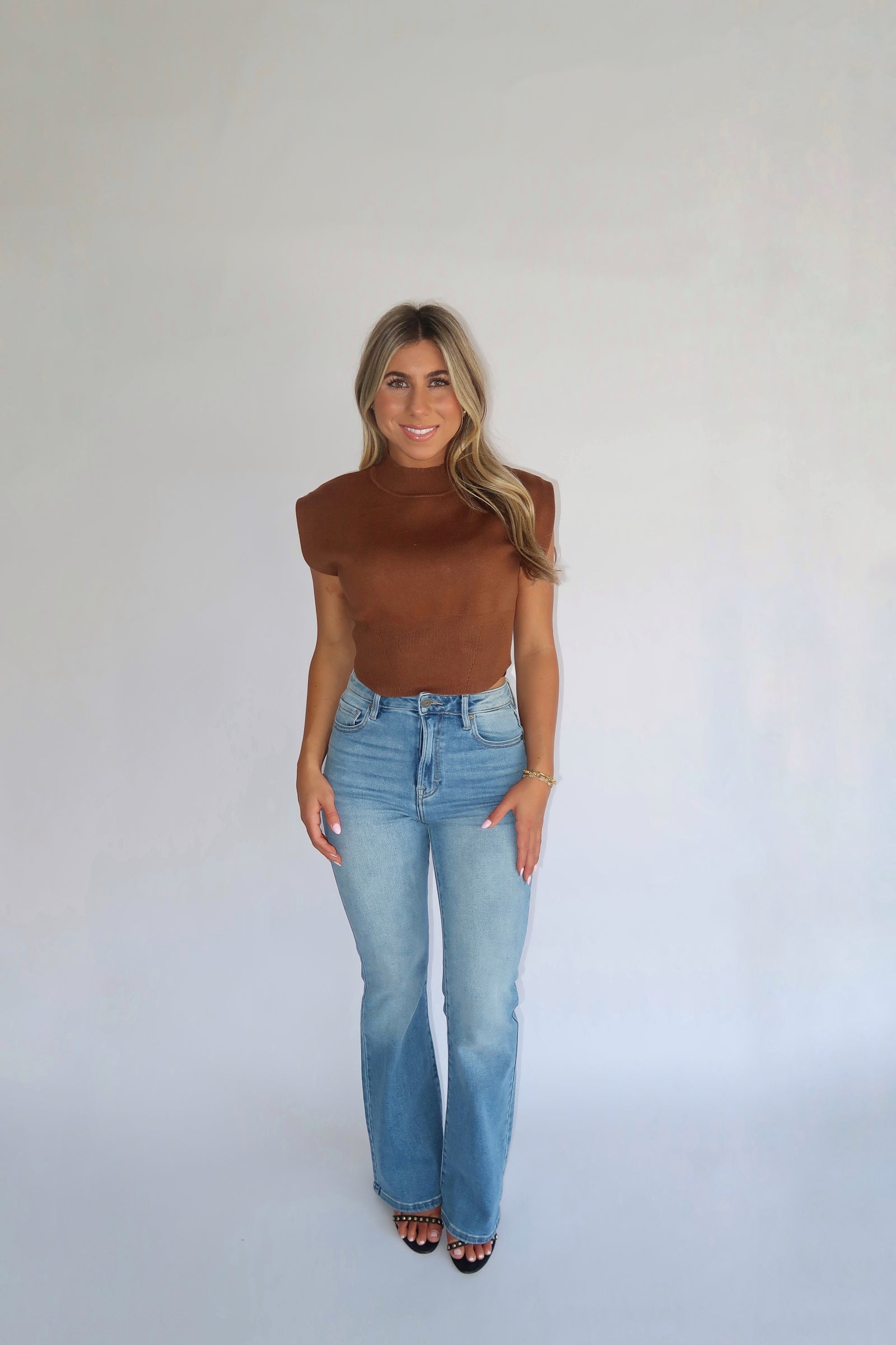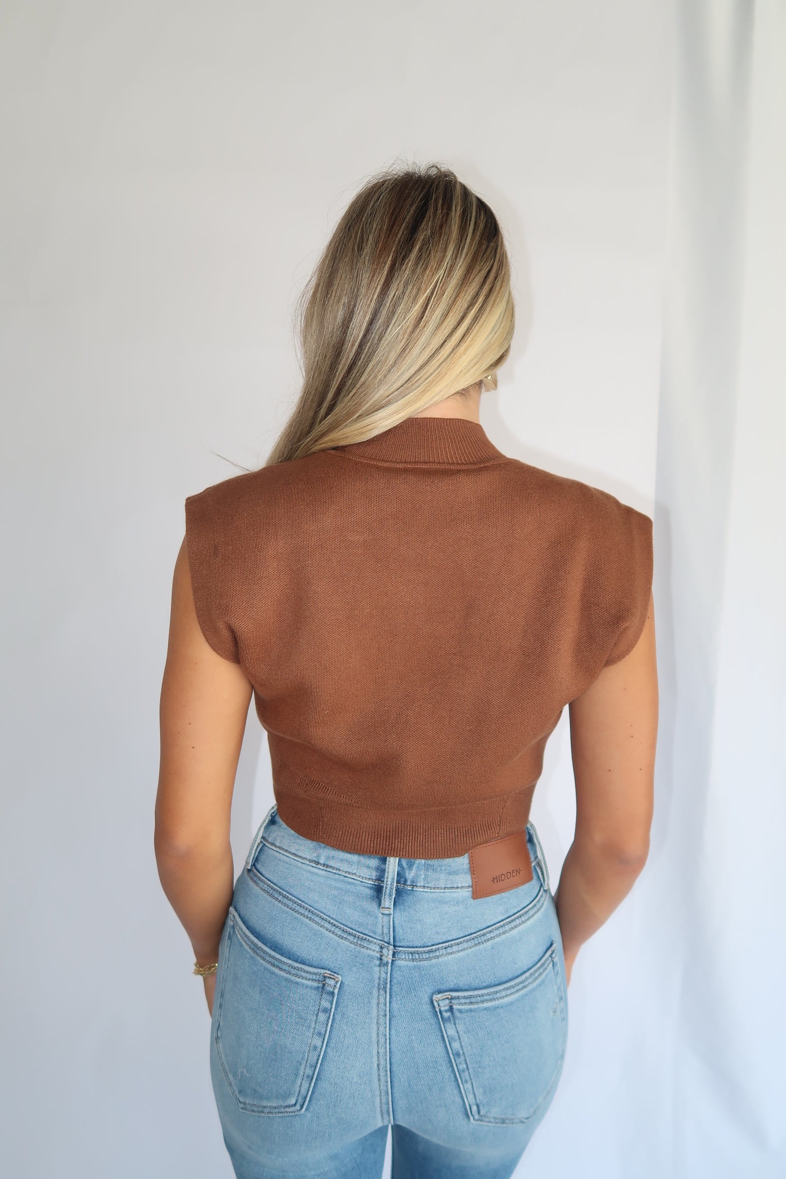 Mock Neck Sleeveless Top - Brown