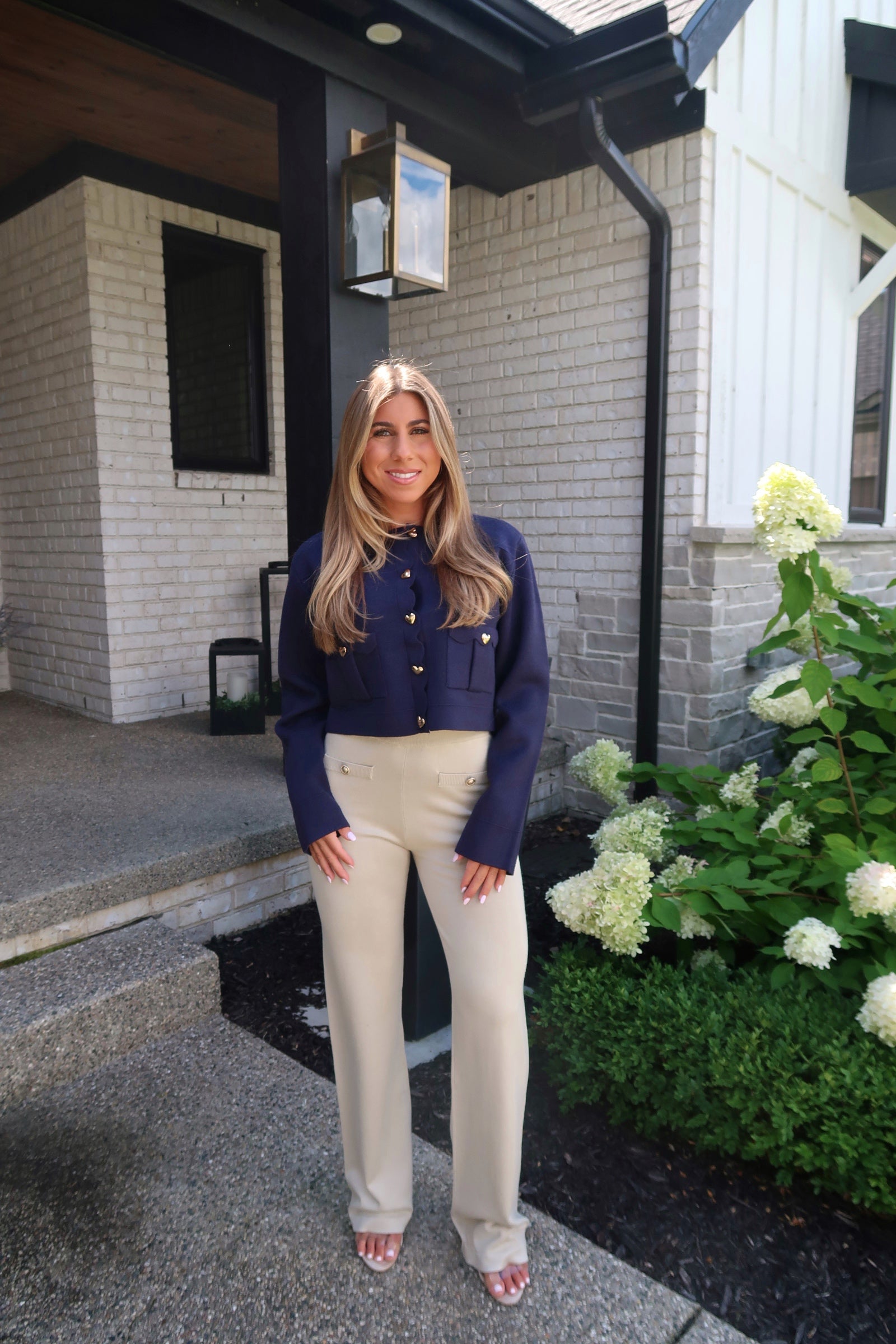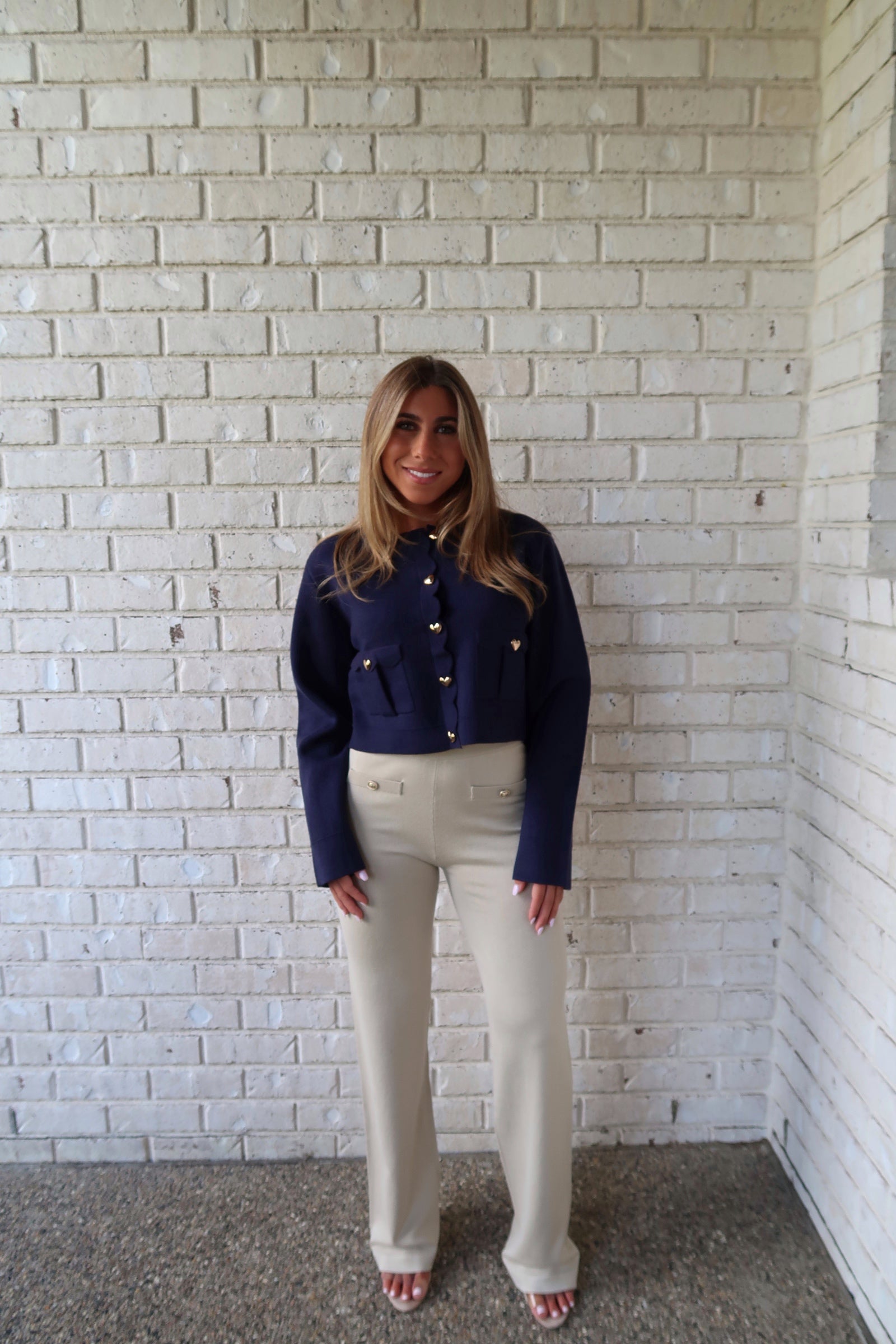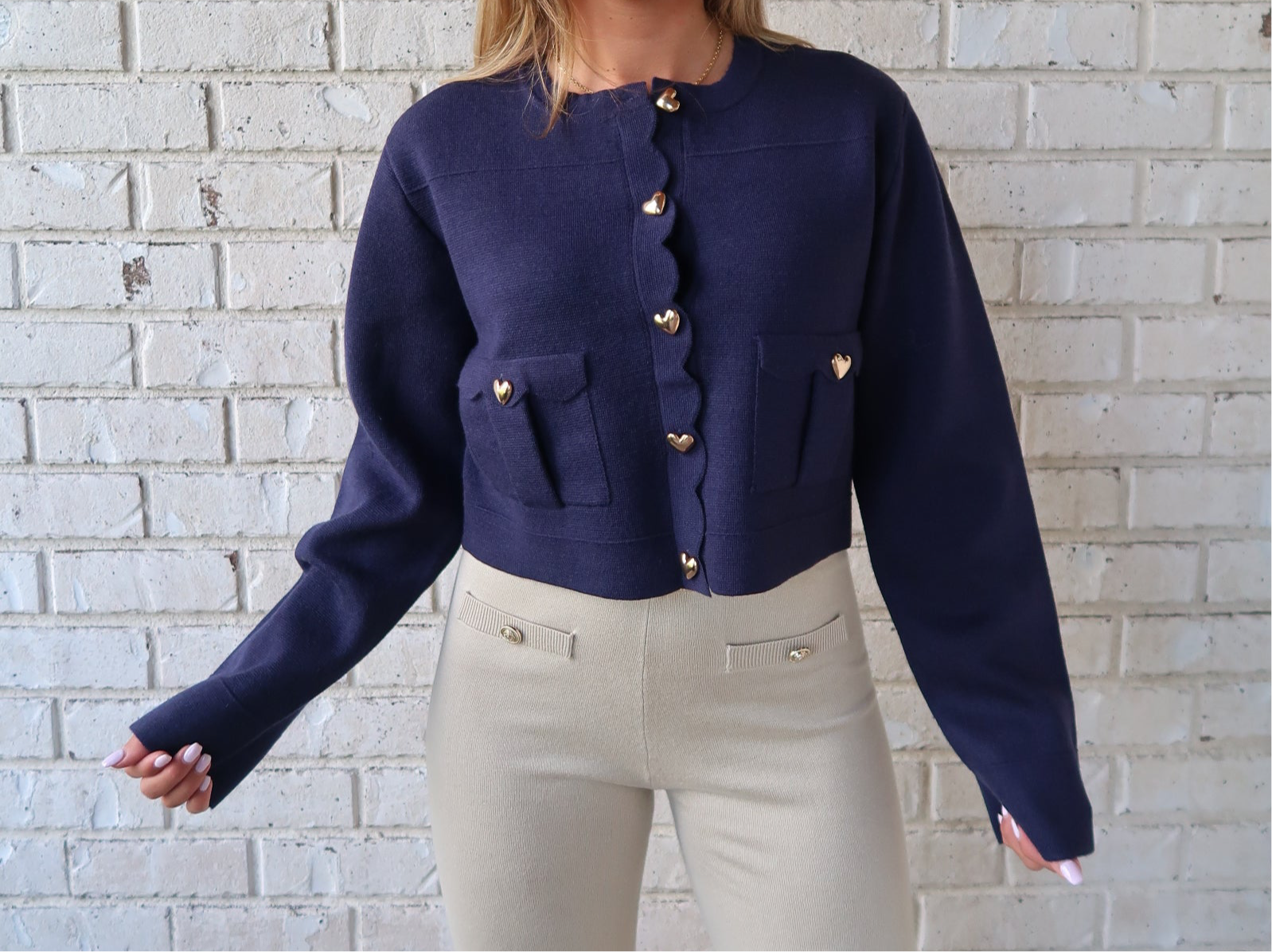 Navy Scalloped Heart Button Sweater