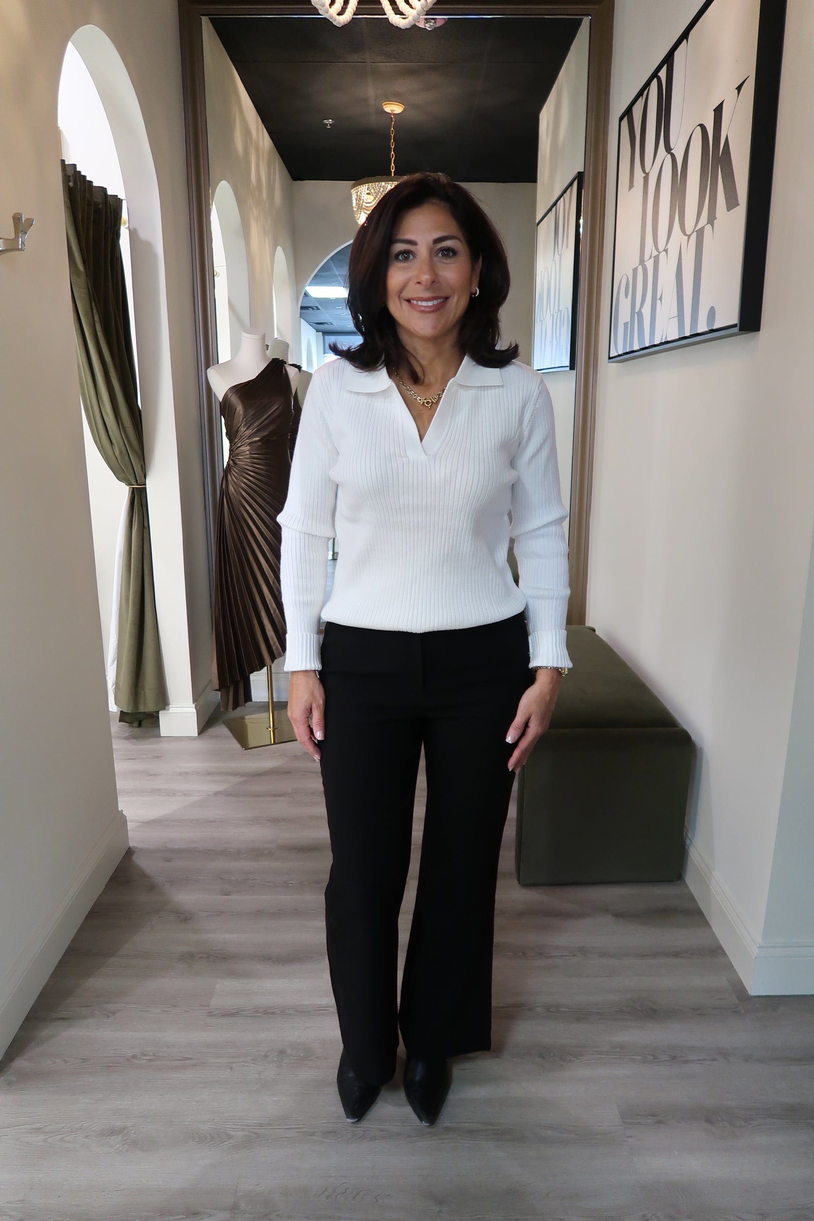 Ribbed V-Neck White Sweater