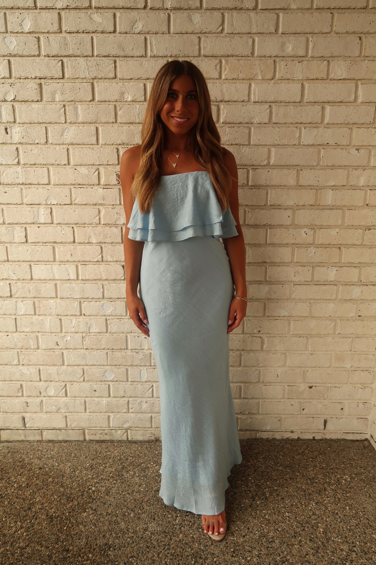 Powder Blue Strapless Maxi Dress